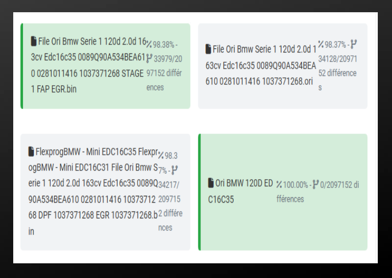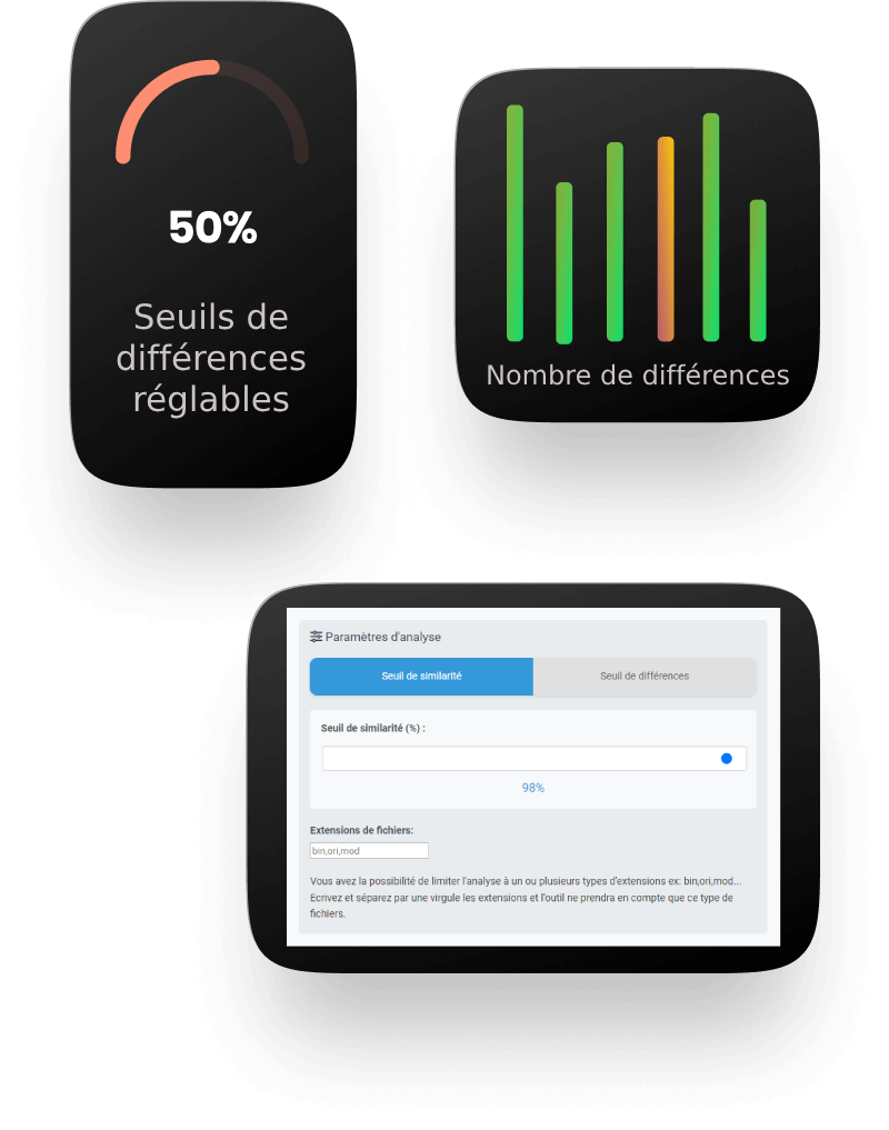 Plus le pourcentage de similarité est élevé, plus les fichiers sont proches, le nombre de différences indique les octets qui diffèrent entre les fichiers.